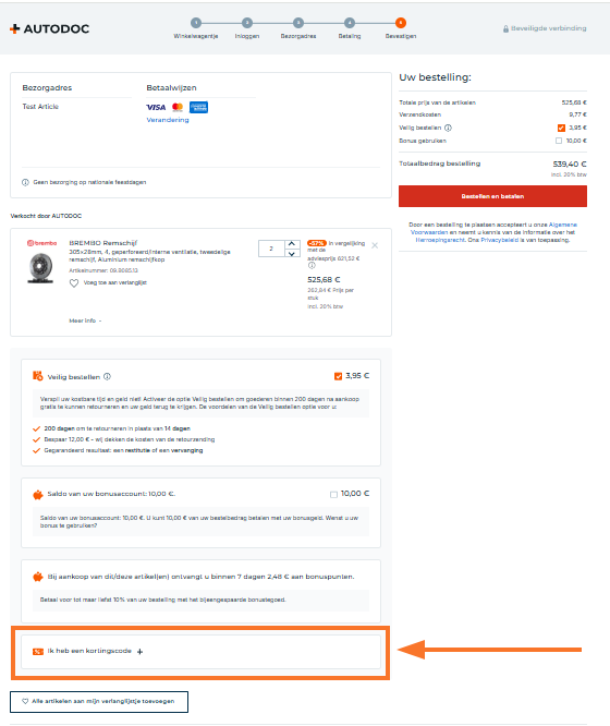 - Je kunt de couponcode invoeren bij de laatste stap van het afrekenen.