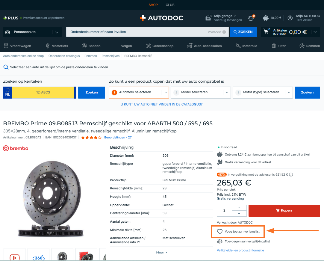 Overweeg het gebruik van een verlanglijst als je later artikelen wilt kopen, of bewaar een favoriet artikel, zodat je dit opnieuw kunt bestellen. Je kunt er hier meer over te weten komen.